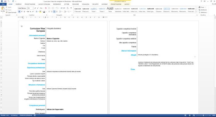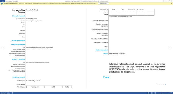 Curriculum Europeo Word - Abilita Modifica