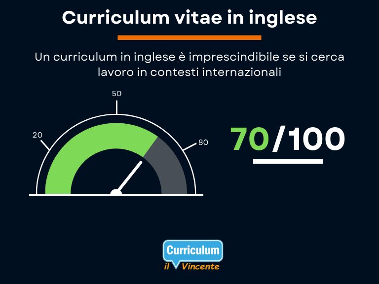 La valutazione di 70/100 riflette il fatto che un CV in inglese può essere meno essenziale in alcune situazioni, ma rimane comunque un’opzione importante per posizioni con un orientamento internazionale o dove l’inglese è richiesto.