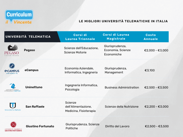 Ricorda di considerare fattori come il riconoscimento del MIUR, l’offerta formativa, il supporto agli studenti e i costi, prima di prendere una decisione.
